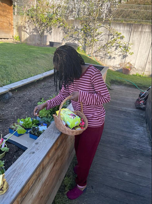 It was now Sunday morning; I woke up early in the morning and my host mum decided to take me with the car. I was only late with some minutes. After mass we got the eggs and started distributing them to people together with Pragya and after that we went to the Chico Mendes to have a community breakfast. After that, we started preparing our lunch and grill. I helped to prepare the easter meal at the KHG we cooked some chicken masala from India with Pragya and Vinay. I felt like staying for a long time and it was really nice seeing some new people cooking food from different countries.